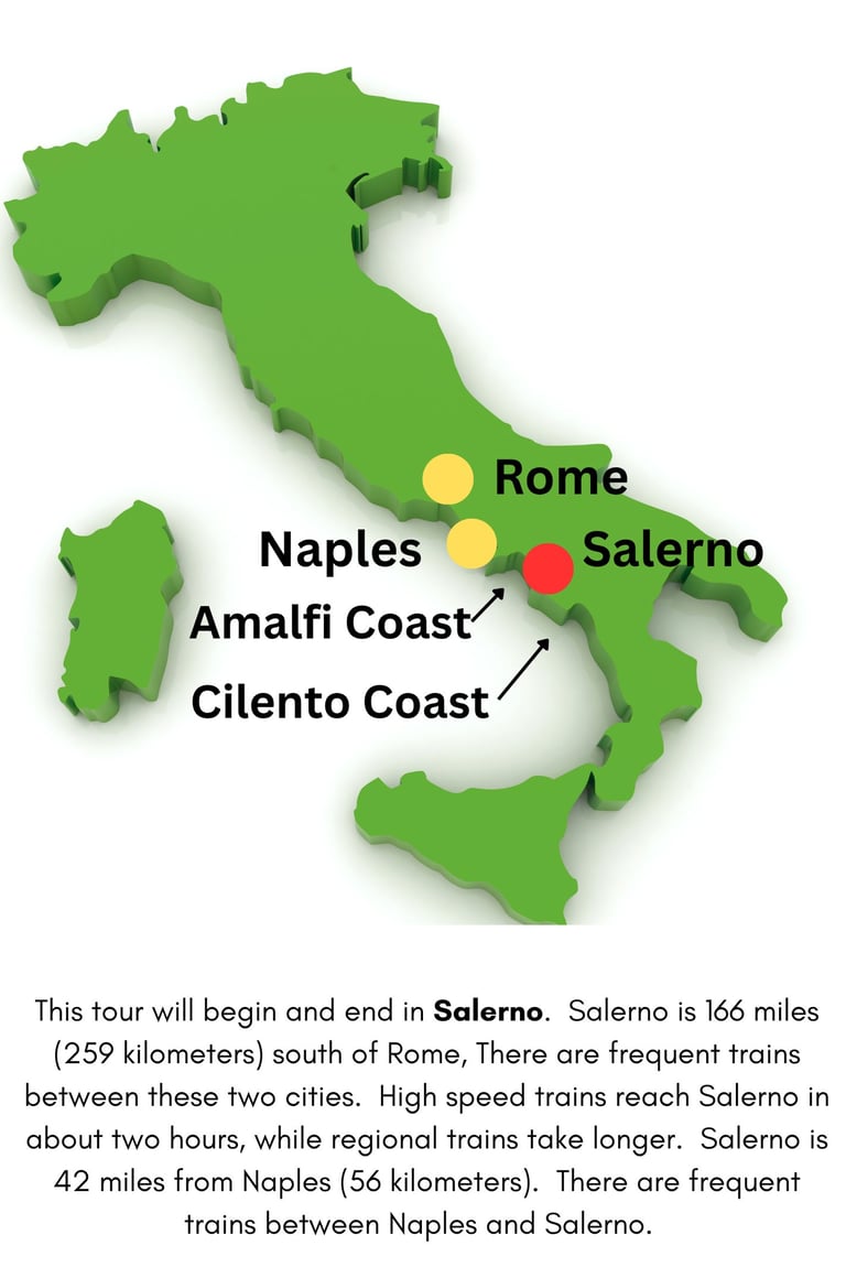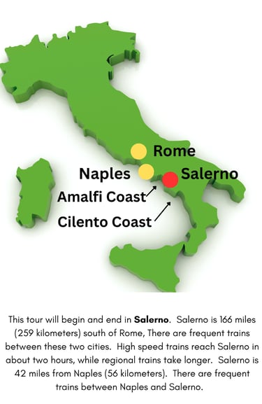 Tour starts and ends in Salerno - which has easy access from Naples and Rome