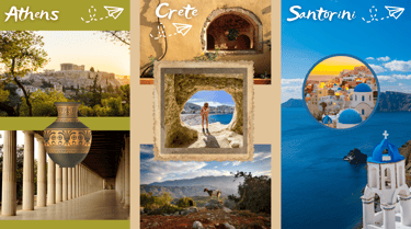 Excluded in price: Air Fare to and from Greece • Air Fare Athens to Chania* • Air Fare Chania to Santorini • Ground transportation from Athens Airport to first night's accommodation • Extra night accommodations * • Travel/Health/ Cancellation Insurance • All Other Meals Not Included • Beverages other than Water at Meals