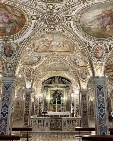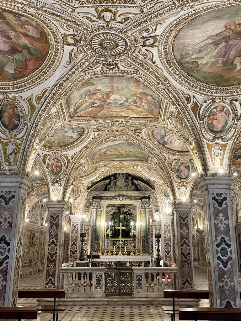 We will explore the charming historic center, “fare passegiata” (stroll) along the beautiful Lungomare Trieste seafront and enjoy gelato at Nettuno (the local's favorite), visit the impressive Salerno Cathedral, and enjoy wonderful pasta and pizza together. The Salerno Duomo is special because it is dedicated to Saint Matthew the Evangelist and locals believe it house his relics in its crypt, making it a significant pilgrimage site. It is also a unique blend of architectural styles, featuring elements from Romanesque, Arab-Norman, and Baroque periods, along with historical features like 11th-century bronze doors from Constantinople and 12th-century lion-guarded stairways.