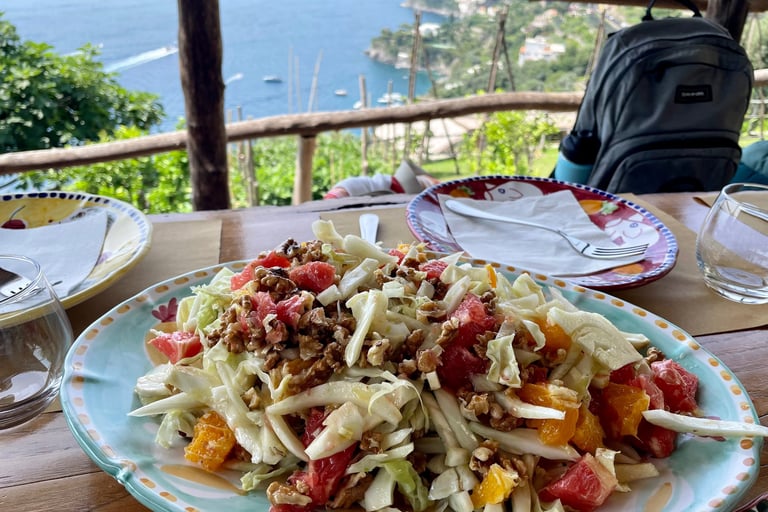 We'll stop in Minori to savor a lemon deliziosa at Sal Riso, an iconic pastry shop that showcases the region's love for citrus flavors. Of course, we will also schedule time to wander through Amalfi, exploring its lively piazzas, the stunning cathedral, and winding alleys filled with shops and cafes. One of the highlights of our trip is an Amalfi Coast Cruise departing from Positano. In Positano, you can admire dramatic cliffs and turquoise waters while enjoying the elegant ambiance of this posh seaside town. You'll find boutique stores and picturesque streets perfect for photos.